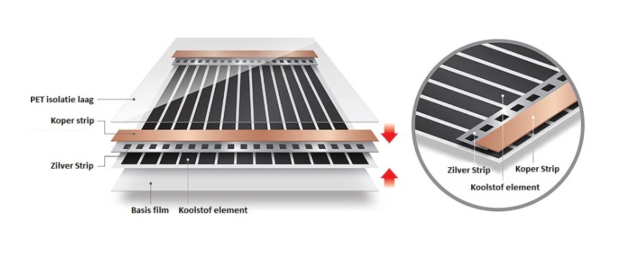 Infrarood vloerverwarming is een elektrisch verwarmingssysteem met als basis een zeer dunne folie van 0,33 mm die in staat is om infraroodstraling op te wekken. Wanneer er stroom door de folie loopt, wekken de koolstofvezels warmte op, die wordt uitgestraald naar de vloer.